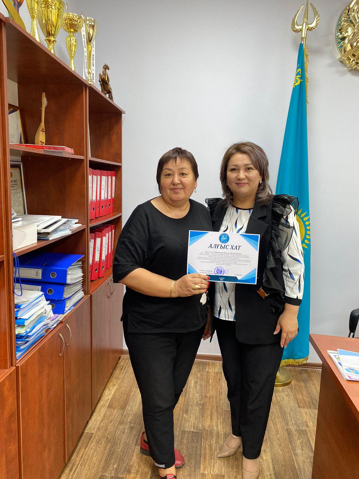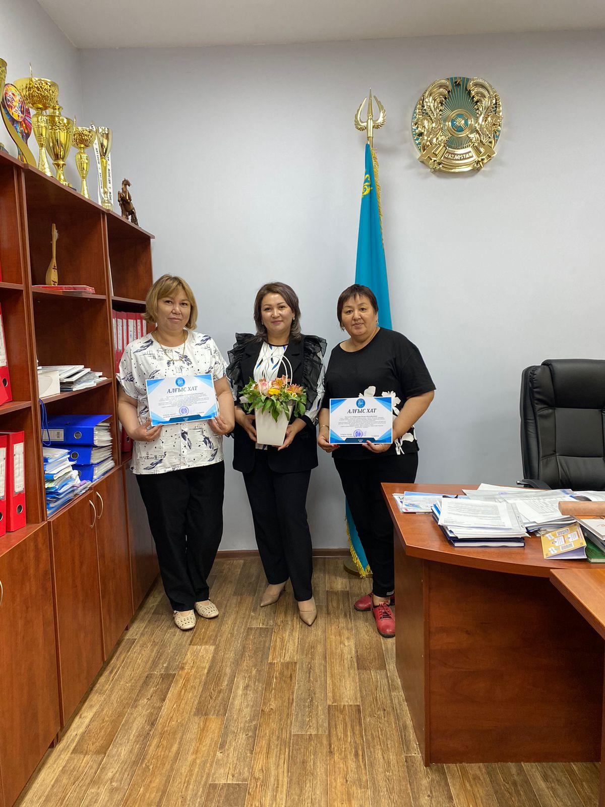 За вклад в организацию и активное участие в районном мероприятии, посвященном 1 мая-Дню единства народа Казахстана, заместители директора по воспитательной работе КГУ ОШ №32 Бейщанова К. А. Сатыбаева Н. К. награждены Благодарственным письмом заместителя акима Турксибского района Е. Амирова.