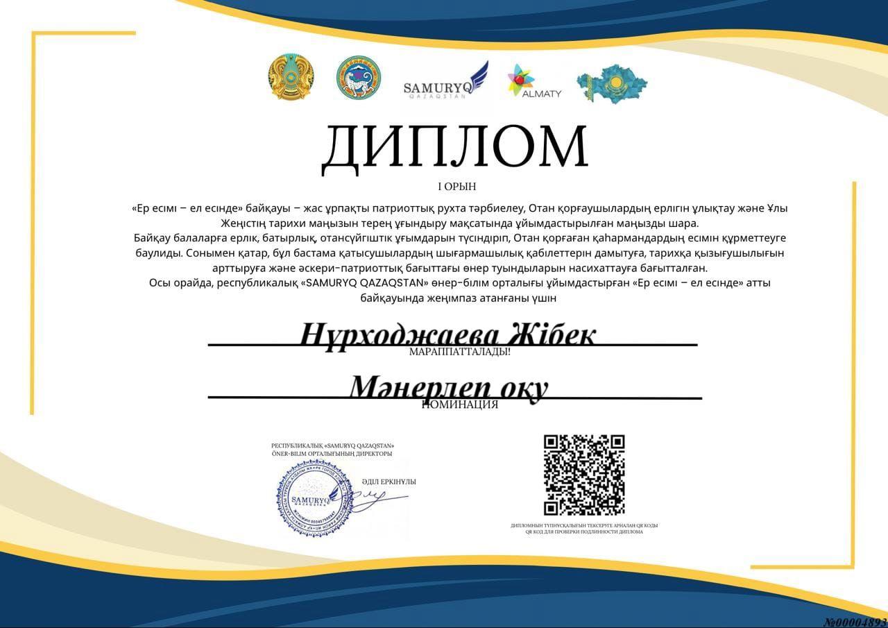 Учащиеся нашей школы приняли активное участие в республиканском конкурсе "Ер есімі-ел есінде" и заняли призовые места в различных номинациях награждены дипломами.