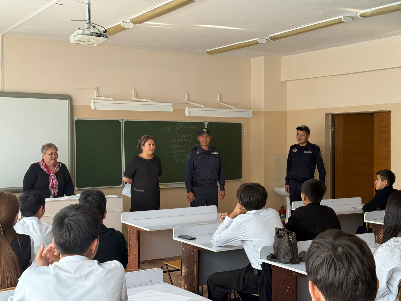 Майор Д.Қ. Момбаев пен лейтенант Б.Б. Қайнарбаев жүргізген әңгіме пайдалы және мазмұнды болды. Ол оқушылардың көлік объектілеріндегі қауіпсіз жүріс-тұрыс ережелері және балалардың жарақаттануының алдын алу қажеттілігі туралы хабардарлығын арттыруға ықпал етті.