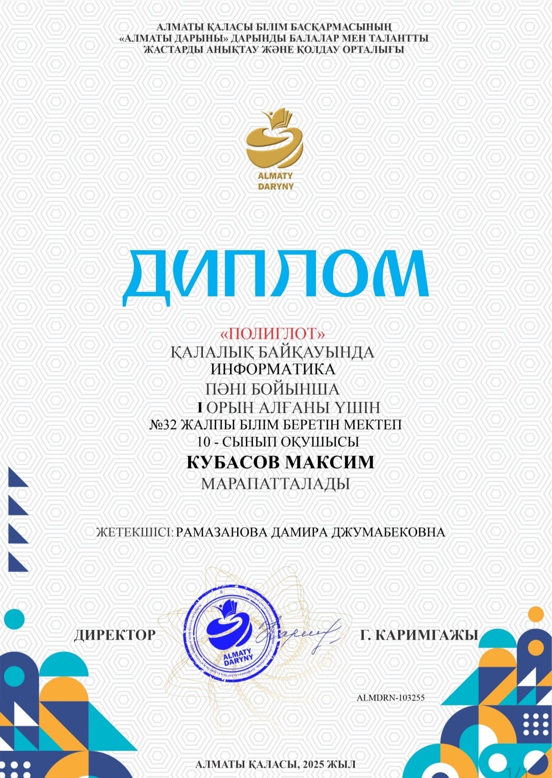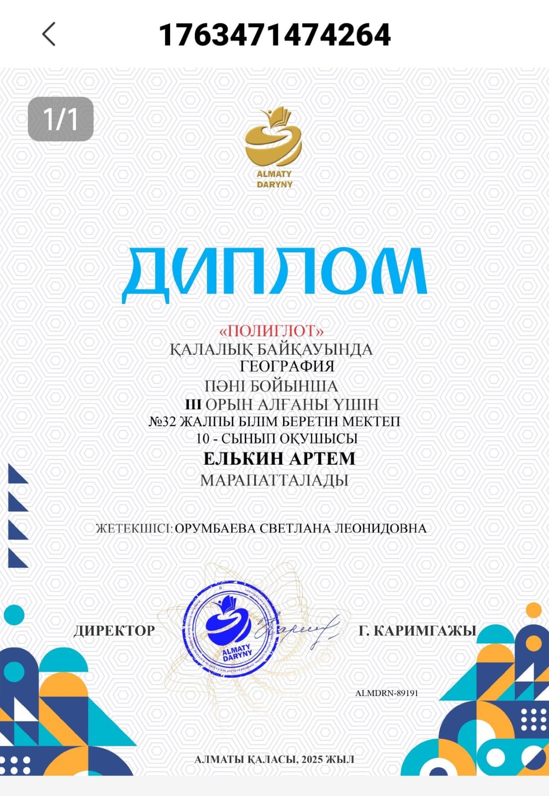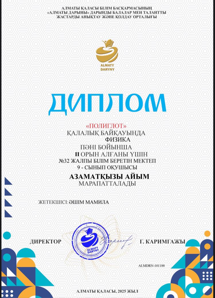 Мектебіміздің ұстаздары "Алматы дарыны" ұйымдастырған "Полиглот" қалалық олимпиадасына қатысты.Оқушылар 1-3 орын алғаны үшін дипломдармен марапатталды.