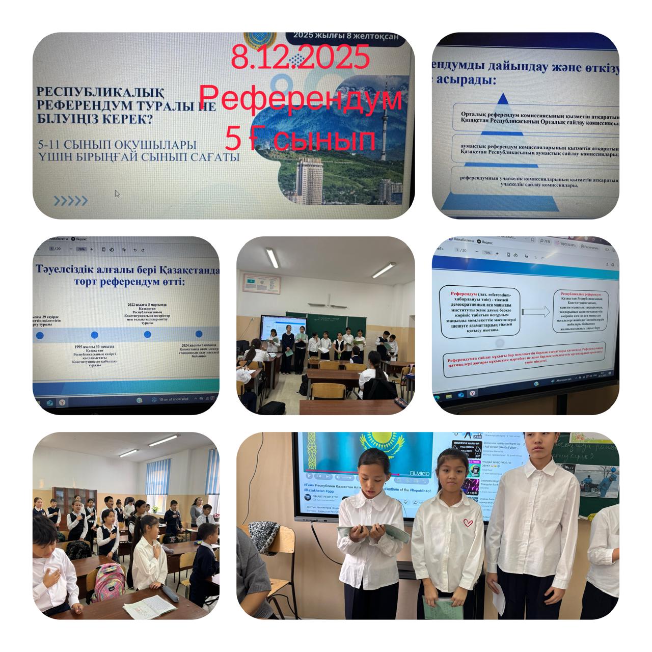 08 желтоқсан 2025 0 1 2 3 4 5 Бірыңғай сынып сағаты/Единый классный час "Что ты знаешь о референдуме?" Кеше "Референдум туралы не білесің?" атты бірыңғай сынып сағаты өтті.5-11 сыныптар арасында.Вчера прошел единый классный час "Что ты знаешь о референдуме?"среди 5-11 классов.