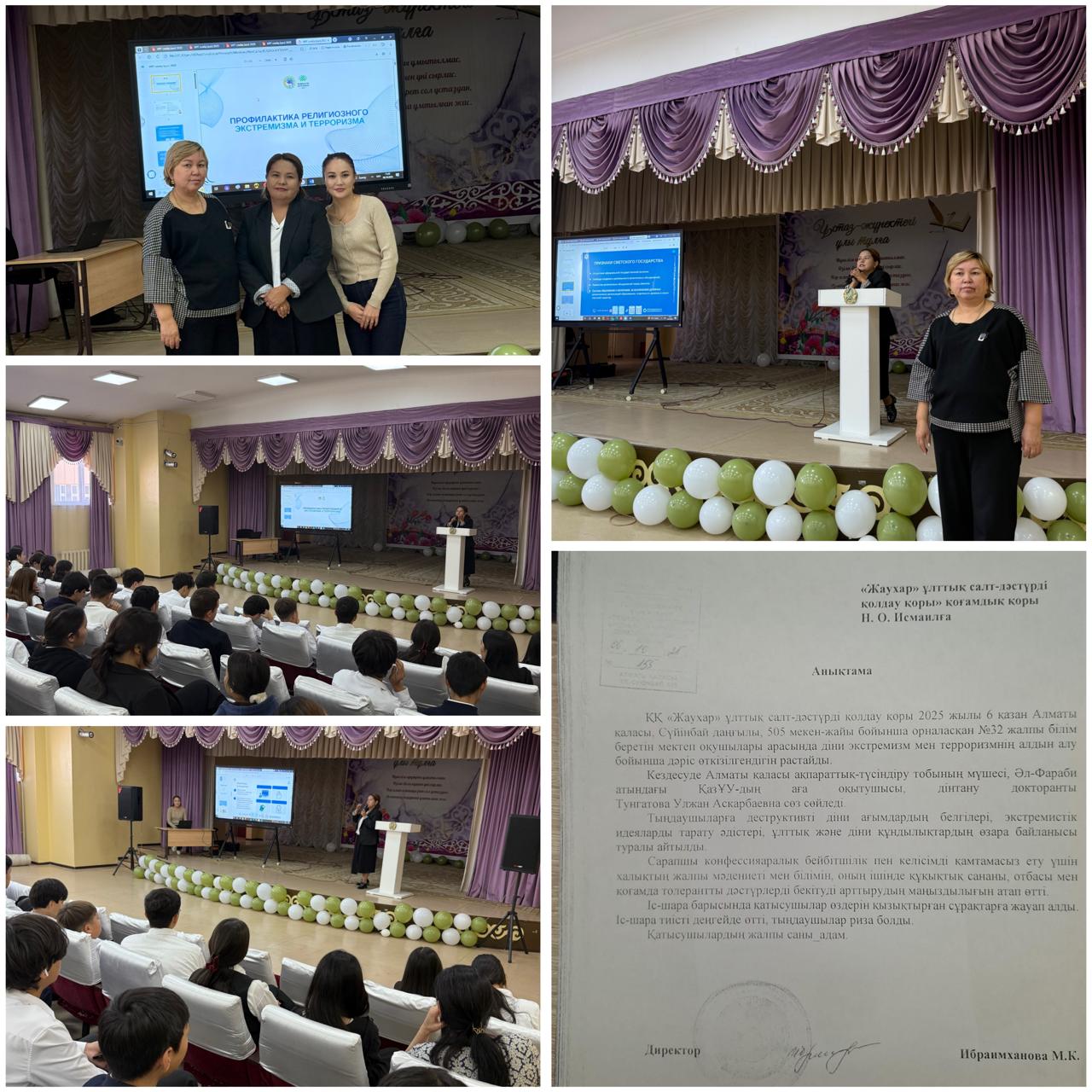 6 қазан КазҰУ-дың аға оқытушысы дінтану докторанты Тунгатова Улжан Аскарбаевна дәріс оқыды “Діні экстремизм мен терроризмнің алдын алу”9-11 сынып оқушыларына
