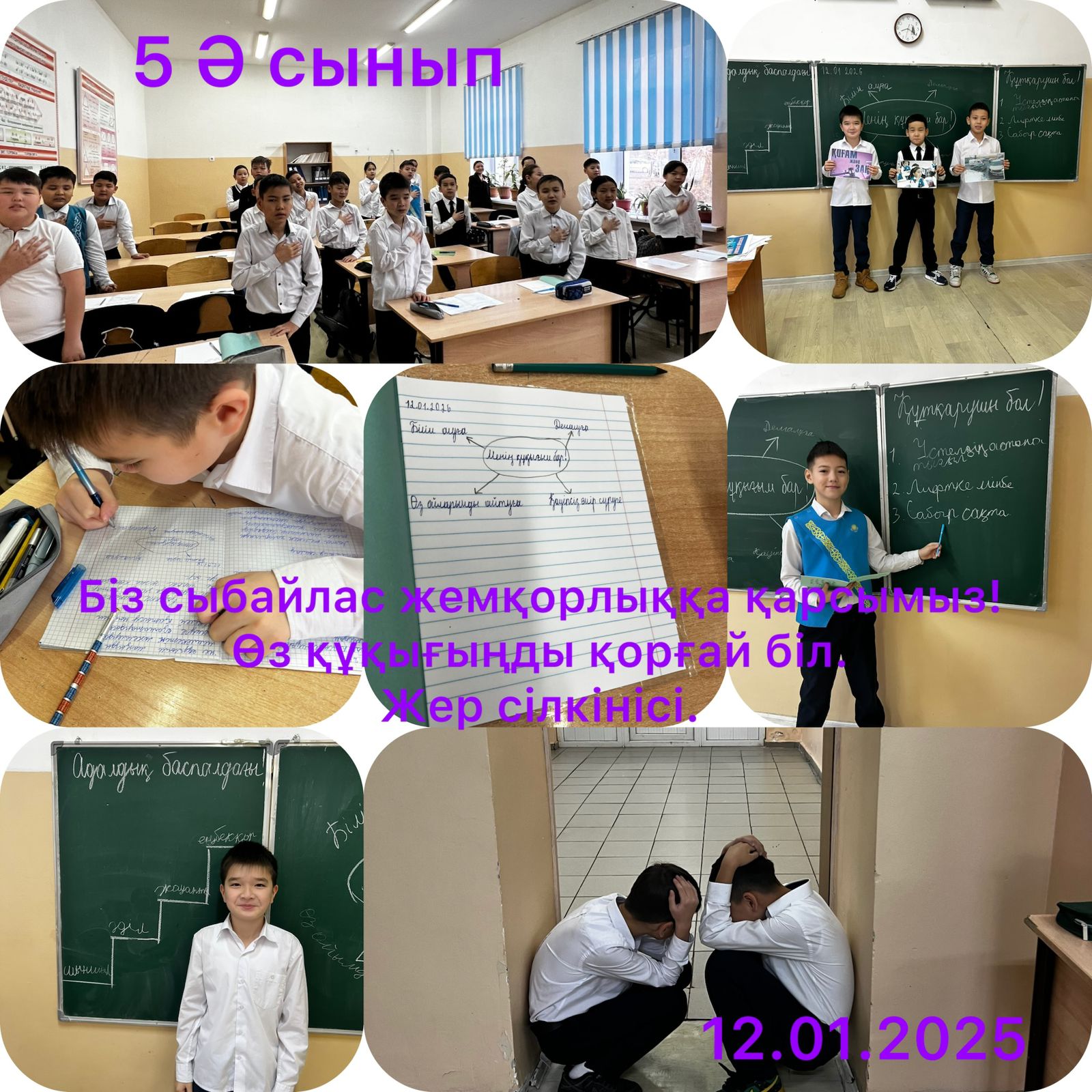 4. Құқықтық білім беру(10 минут)12 января прошел классный час по теме «Мы против коррупции!»