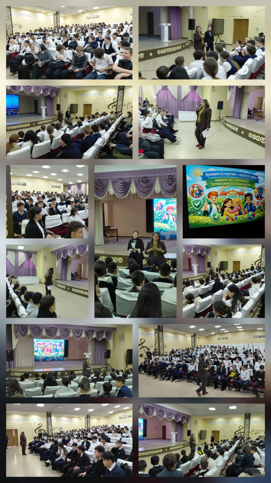 19 қаңтар күні 7-8 сынып оқушылары үшін акт залында буллингтің алдын алу бойынша бейнероликтер көрсетілді бейнероликтерді көргеннен кейін мектеп психологтары Д.Б. Нұғманова мен Е.Б. Задаевамен сұрақ-жауап әңгімесі өткізілді.