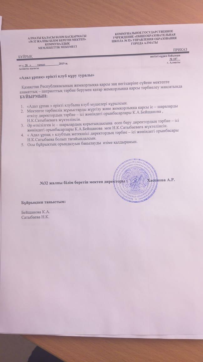 КГУ «Общеобразовательная школа №32 » Управления образования г.Алматы