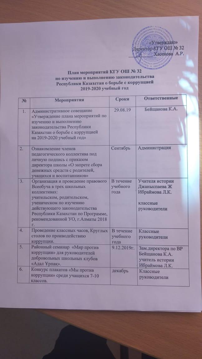 02 қыркүйек 2019 0 1 2 3 4 5 Сыбайлас жемқорлыққа қарсы іс-қимыл жоспары/План мероприятий по борьбе с коррупцией