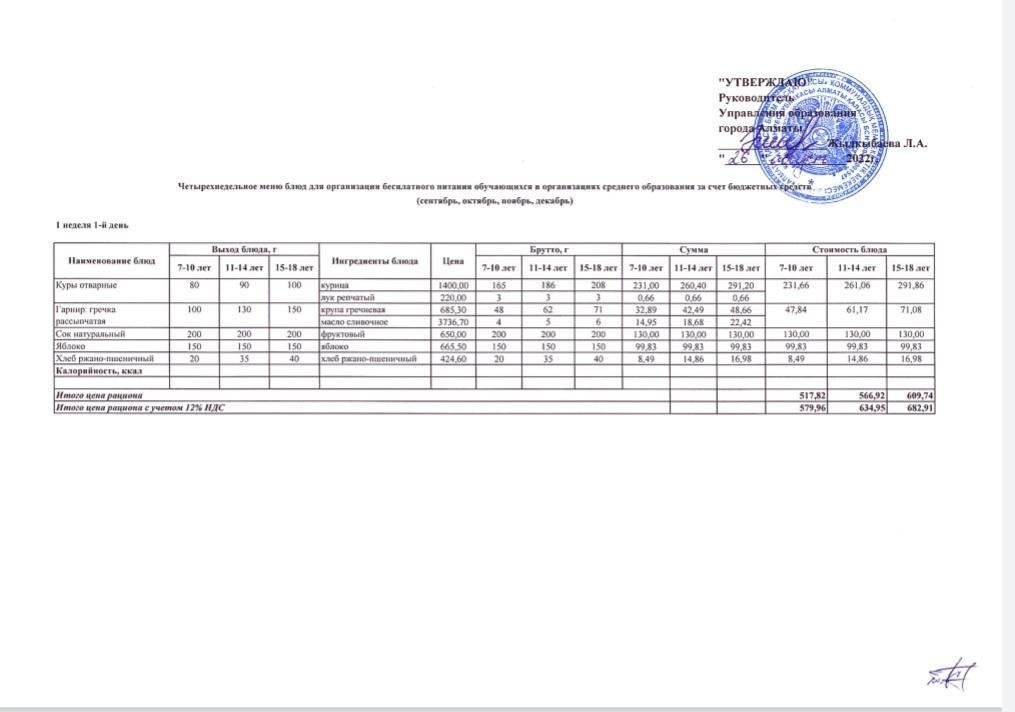 Ас мәзірі -2024