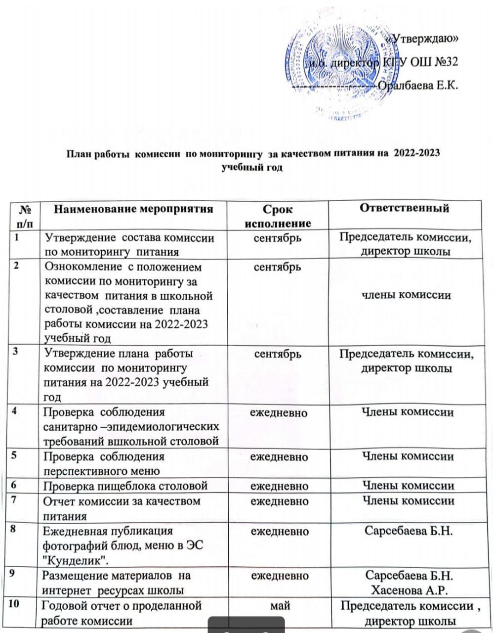 01 қыркүйек 2022 0 1 2 3 4 5 Тамақтану сапасын бақылау коммиссиясының 2022-2023 оқу жылына арналған жұмыс жоспары