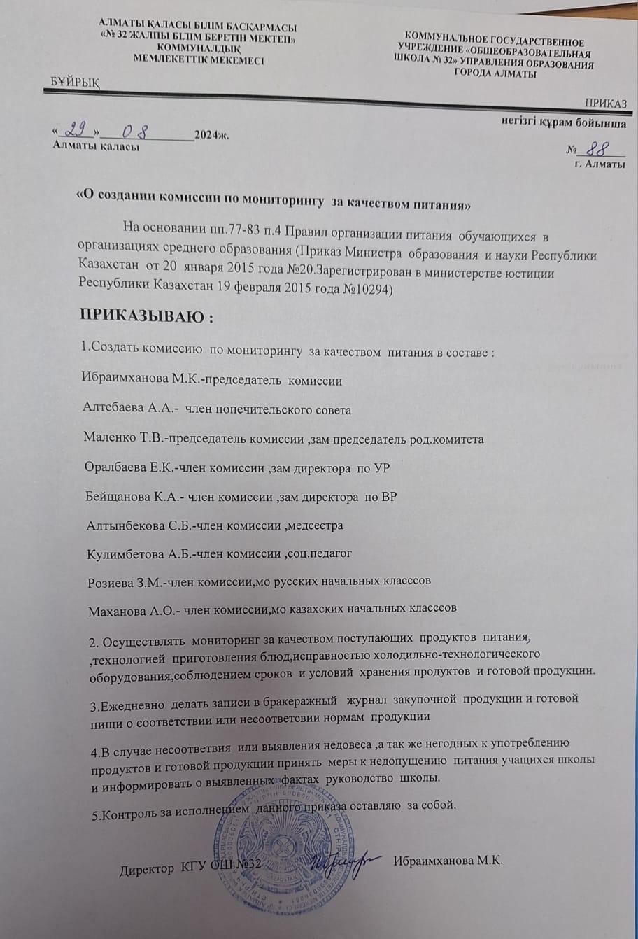 21 ақпан 2025 0 1 2 3 4 5 Тамақтану сапасын бақылау жөніндегі комиссия құру туралы бұйрық 2024-2025оқу жылы/О созаднии комисиии по мониторингу за качеством питнания 2024-2025уч.год