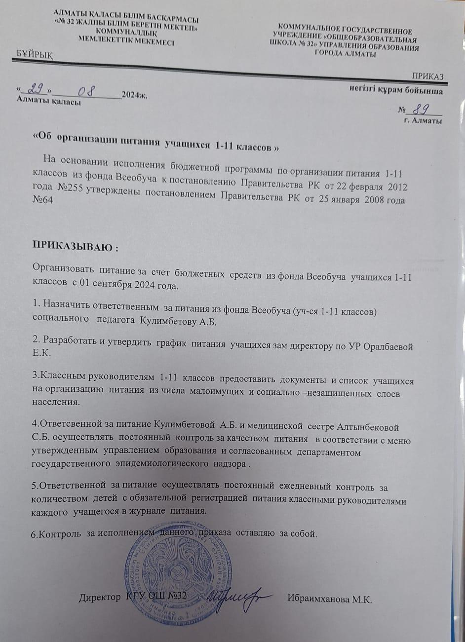 21 ақпан 2025 0 1 2 3 4 5 1-11 сынып оқушыларын тамақтандыру туралы бұйрық 2024-2025 оқу жылы/Об организация питания учащихся 1-11классов на 2024-2025учебный год