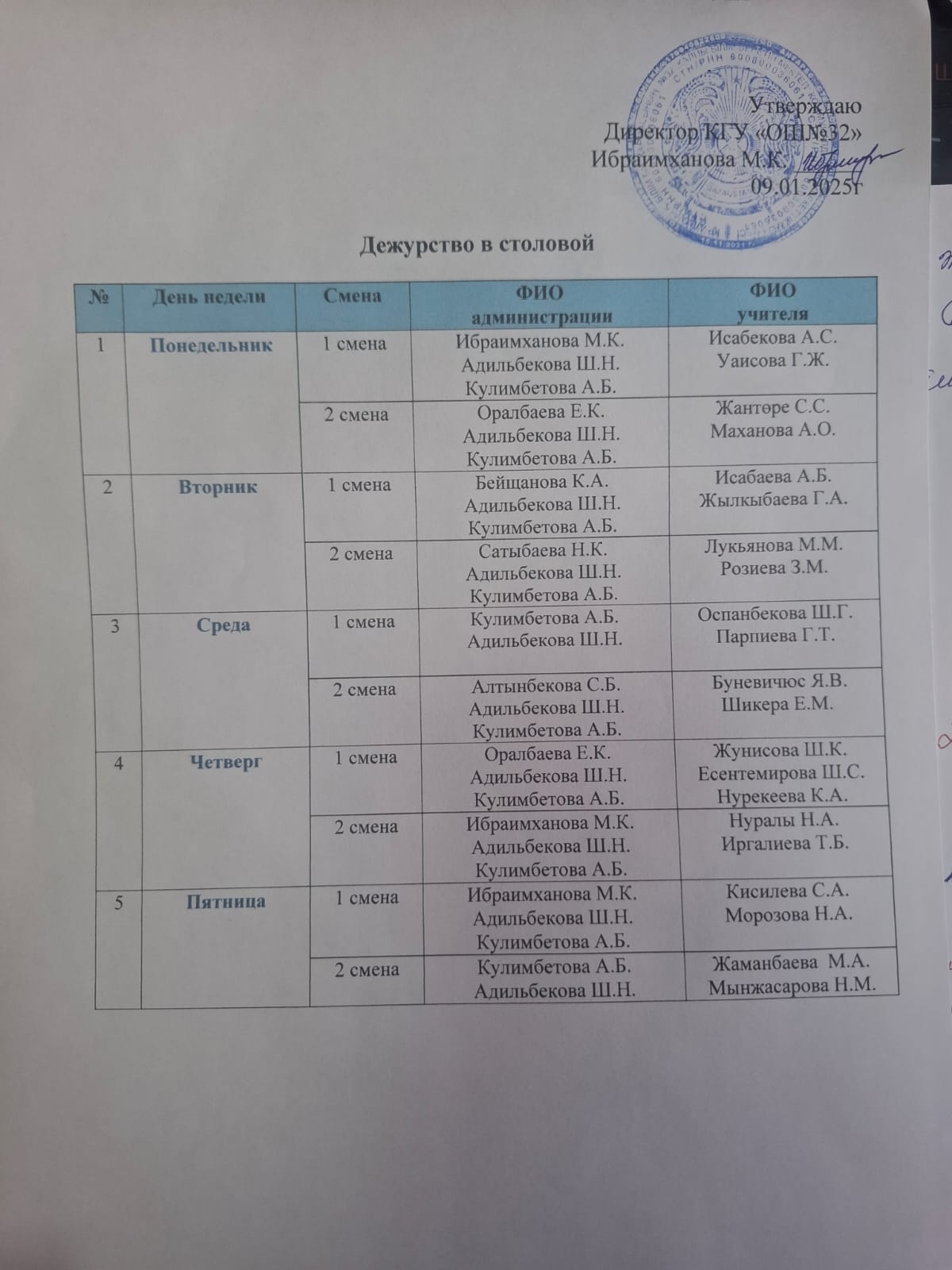 24 ақпан 2025 0 1 2 3 4 5 Асханадағы мұғалімдер кезекшілігі 2024-2025оқу жылы/ График дежурства учителей в столовой 2024-2025уч.год