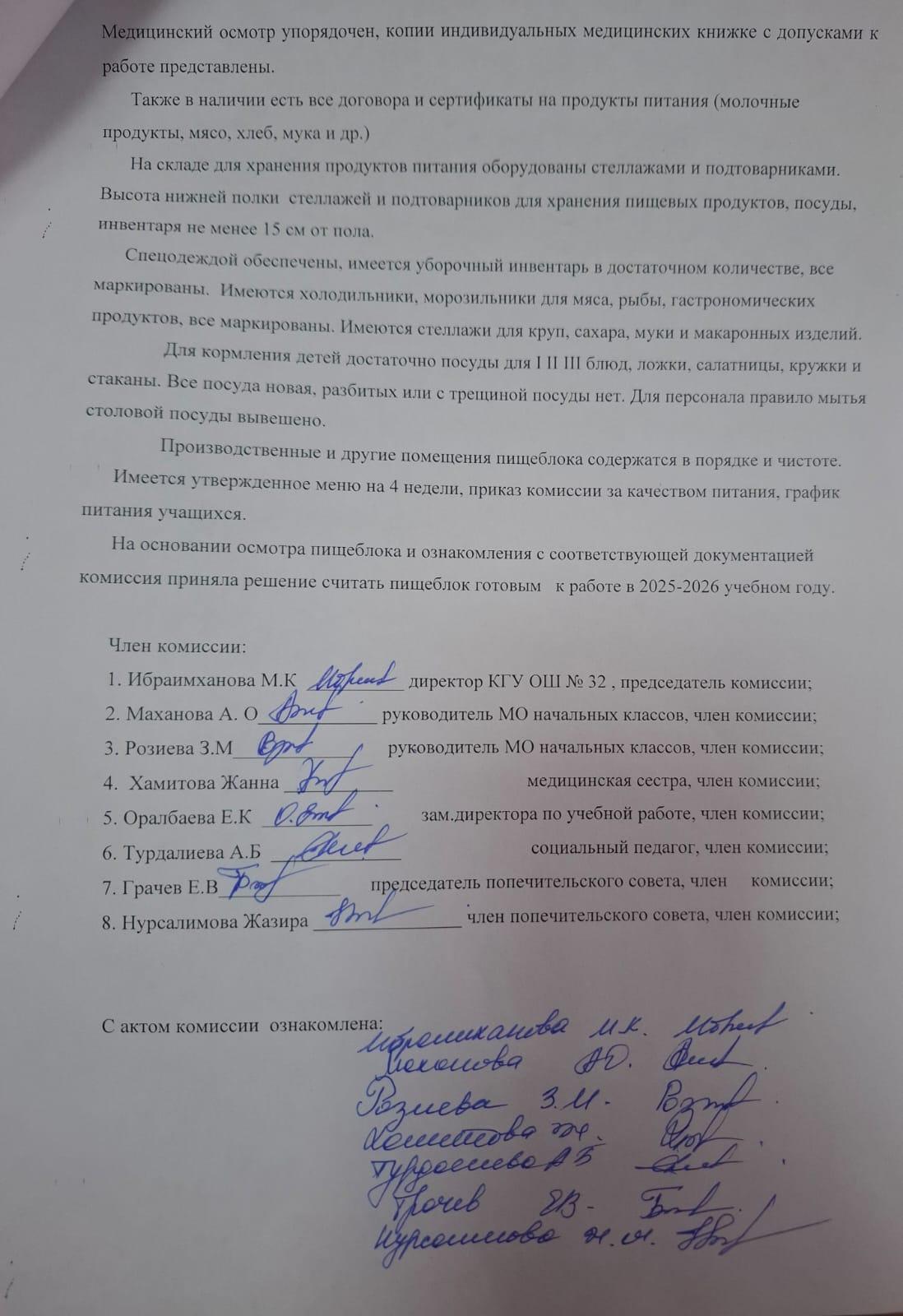 Акт о готовности столовой к новому 2025-2026 учебному году
