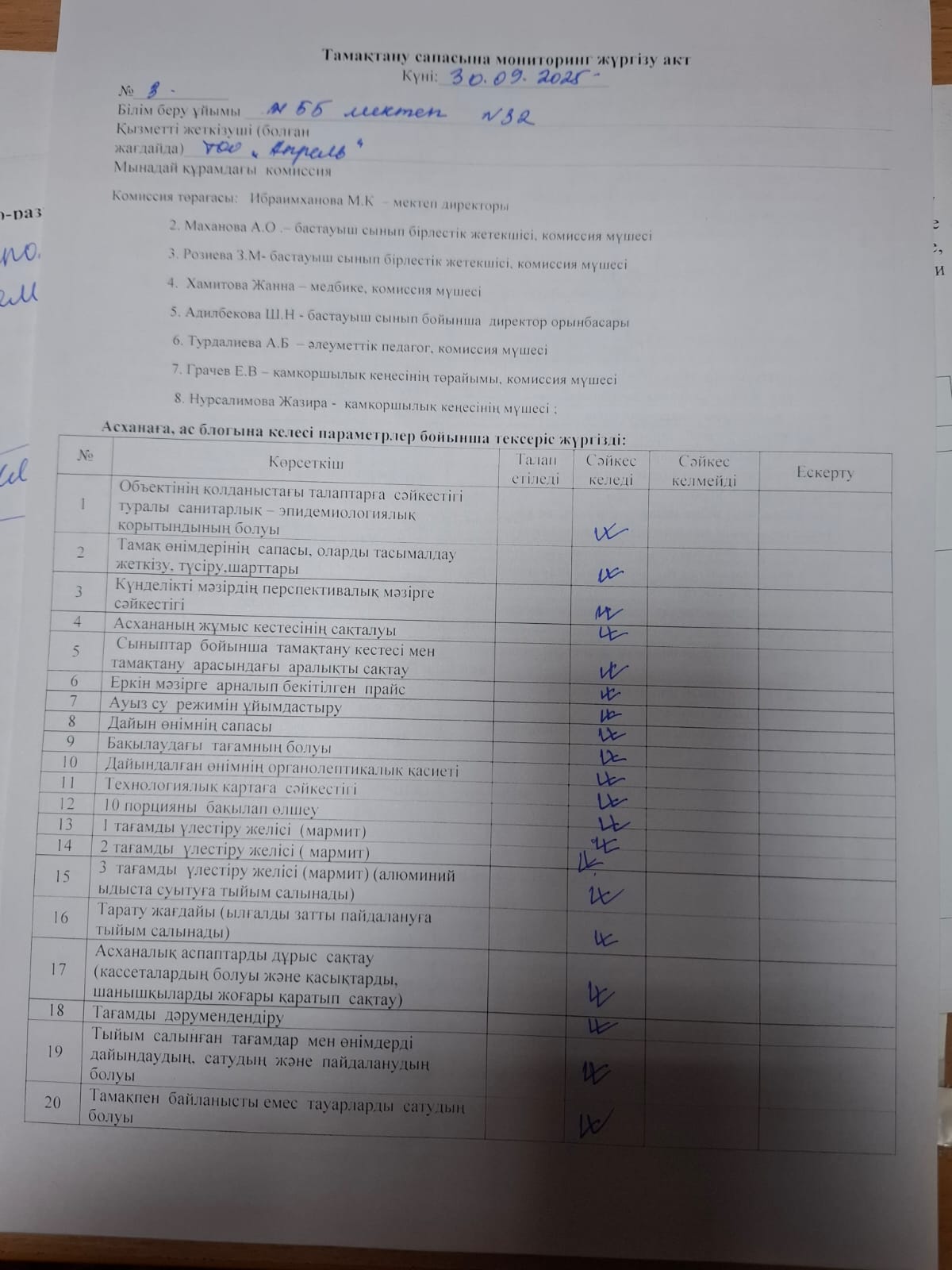 30 қыркүйек 2025 0 1 2 3 4 5 Тамақтану сапасына мониторинг жүргізу туралы акт/АКТ мониторинга качества питания