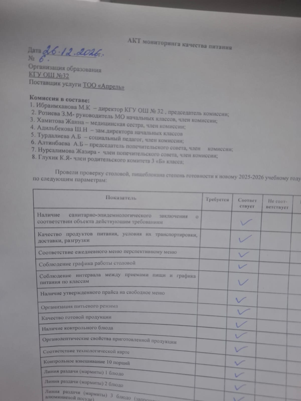 26 желтоқсан 2025 0 1 2 3 4 5 Тамақтану сапасына мониторинг жүргізу туралы акт/АКТ мониторинга качества питания