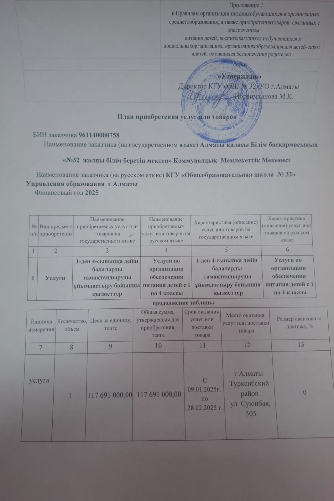 08 қаңтар 2026 0 1 2 3 4 5 Қызметтерді немесе тауарларды сатып алу жоспары/План приобретения услуг или товаров